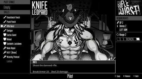 Wolfstride是一款冒险闯关游戏,玩家将扮演驾驶员操控机甲进行战斗。游戏以日系黑白画风的文字类视觉为特色,采用了AP点数制的回合制玩法模式。下方的格子代表了距离,有数字的格子代表着有利地形,而机甲身上的各个数值则代表了每一个区域的损耗度。