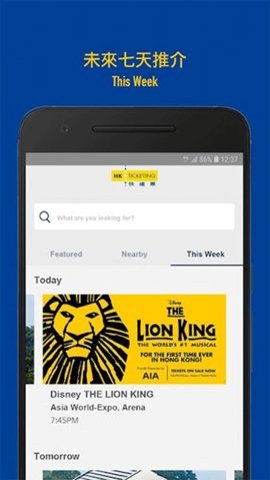 3、HKTicketing快达票App是香港地区的票务信息平台,提供上百种不同类型的门票销售服务,如演唱会、话剧、展览、运动比赛、电影等各类文艺娱乐活动的门票。