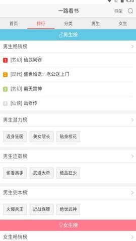 2、为了方便用户快速找到自己感兴趣的小说,一路看书对小说进行了细致的分类。