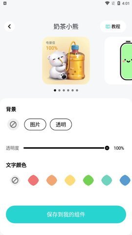 4、添加小组件时,用户先选择需要的小组件,然后可以调整背景、图标圆角度数、透明度等参数,最后点击保存到我的组件。