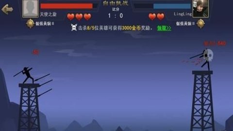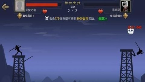 1、沙雕英雄的游戏玩法非常有趣,两名玩家将分别站在一个高台上,互相投掷长矛将敌方扎穿来取得胜利。