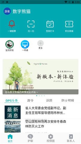 2、数字熊猫还提供了丰富的内容,如DPS头条、一键报警、值机打卡、火灾预测等。