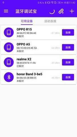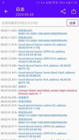 1、值得一提的是,蓝牙调试宝还支持扫描包含设备MAC地址的快速连接。