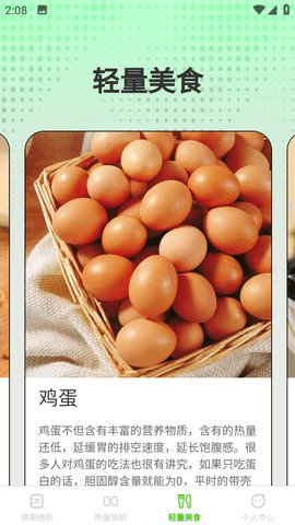 3、它不仅提供了丰富多样的健康知识和娱乐资源,还帮助用户记录热量摄入并推荐轻量美食。