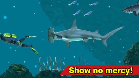 1、在海洋世界中,您将像一条鲨鱼一样游戏,并且必须像饥饿的鲨鱼一样吞噬水肺潜水员,与几十种真实的海洋生物展开激烈的对抗。