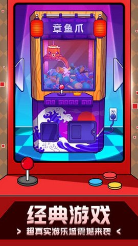 1、在游乐城模拟器中,玩家可以尽情玩耍各种超级经典的电玩游戏,如迷你夹娃娃机、推金币机、投篮机和打地鼠机。