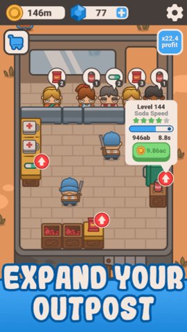 2、空闲前哨站是一款策略塔防类手游,玩家需要经营一个后世界末日的交易站,通过升级和扩展来提升自己的交易站,防止僵尸的入侵。