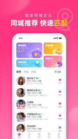 2、这款同城视频恋爱交友软件提供了全新的视频交友互动玩法,能够帮助用户更有效地与同城的TA建立社交关系。