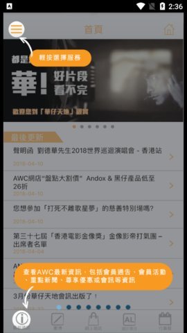2、华仔天地的手机应用程式提供了网上商店、活动花絮、讨论区等功能,让用户可以方便地进行操作。