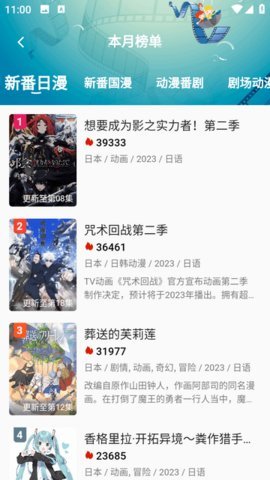 1、嘶哩嘶哩动漫还提供实时更新的动漫排行榜,让用户轻松了解当前热门的动漫作品。