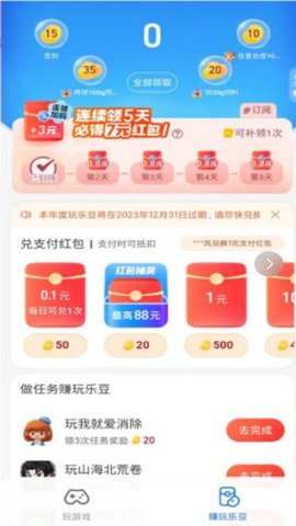 1、加上签到和玩乐豆的奖励,总共可以领取3次红包。