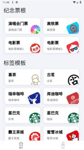 3、不仅如此,票根标签生成器App还支持多种APP订单票根生成,包括火车票、喜茶、星巴克、瑞幸咖啡等。