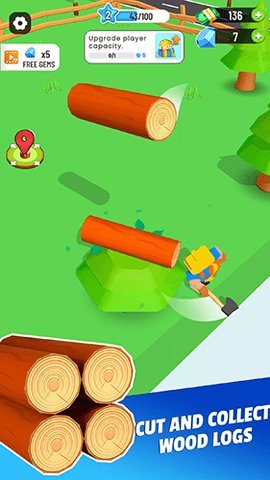 1、砍伐树木后,你可以出售树木并购买升级道具。