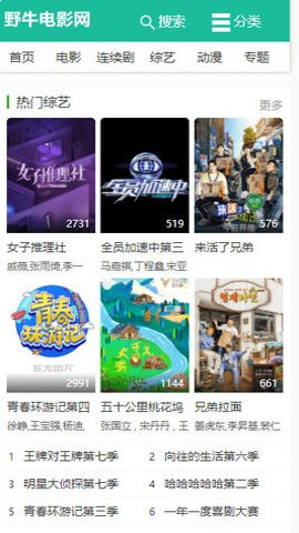 2、野牛电影支持国产剧、日剧、韩剧等多种视频资源,搜索也非常方便。