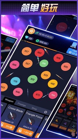 1、玩家需要注意发射武器的角度,因为它们会在球体之间不断弹射,每一次弹射都能造成高额伤害。