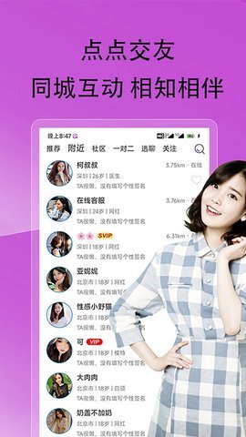 3、点点交友软件支持视频聊天功能,让沟通更加直观和真实。