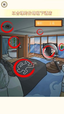 2、玩家需要在游戏中寻找场景中的不合理之处,并进行标记。