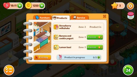2、玩家还可以设计自己的餐厅,免费建造自己梦想的咖啡馆。