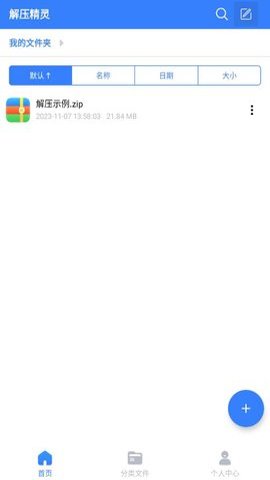 4、解压精灵还提供了文件排序功能,用户可以通过名称、、大小等方式进行排序,方便查找文件。