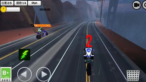 3、玩家可以选择不同的摩托样式、赛制、圈数以及机器人选手的人数和等级,同时最佳圈速也可以给玩家做好标记。