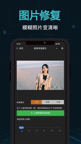 3、剪画还提供了图片修复功能,可以将模糊的照片一键修复成清晰的图片,让你的作品更加精美。