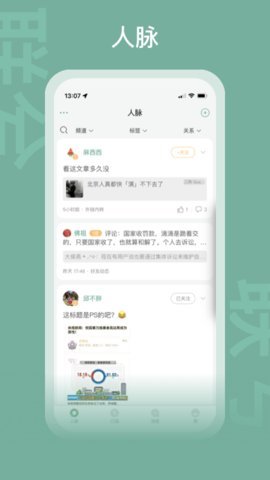 2、用户可以看到人脉发布的共享信息,并方便地增加或减少特定人、特定桥接人的信息量。