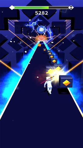 3、节奏刀光是一款音游类型的游戏,通过一定的音乐节奏和背景音乐引导玩家进行操作和攻击障碍物。