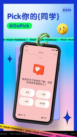 4、无论是想要结交新朋友,还是了解自己在同学中的形象,GoPick都是一个不错的选择。