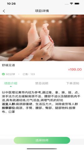 3、无论身体不舒服还是想要放松身心,用户都可以随时在手机上预约,让专业的技师为他们提供服务。