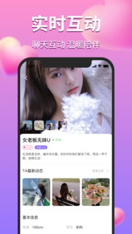 1、用户可以通过在线聊天选择心动对象,实现即刻脱单的目标,找到恋爱交友的对象。
