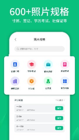 3、从而用户可以根据自己的需求选择合适的尺寸模板,满足各种证件照制作的需求。