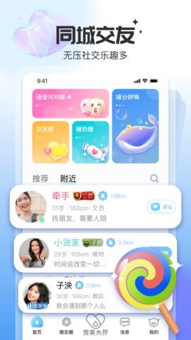 给糖同城交友是一款真实开放的移动社交应用,致力于为用户提供更贴心、轻松、高效的聊天交友服务。通过智能匹配算法,用户可以轻松高效地结识新朋友,节省和精力。界面友好易用,操作便捷,让用户可以快速上手。
