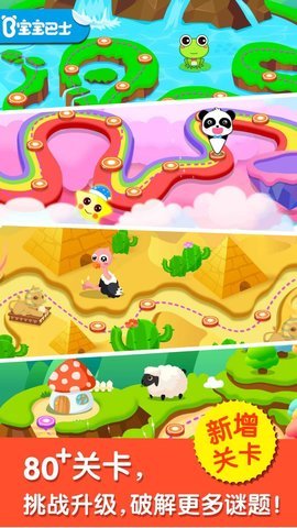 2、游戏还新增了四大全新启蒙主题,共有80多个益智关卡供宝宝畅玩。