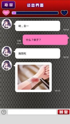 病娇谈恋是一款日式风格的模拟恋爱手游,玩家可以扮演男主角与可爱的病娇女交往。通过文字交流,探索更多剧情,提高病娇女对玩家的好感度,直到能够谈恋爱的程度。但是要注意,在与病娇女信息聊天时选择正确的选项,否则可能会走向bd结局。