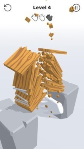 3、玩家需要注意手臂发力点,通过找到合适的发力点将木板全部砍断。