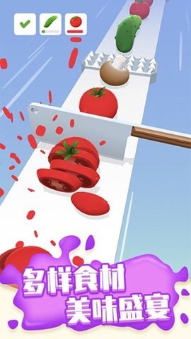 4、每个关卡都有不同的难度和要求,需要你灵活运用刀具,迅速切割水果蔬菜,以获得更高的分数和通关奖励。