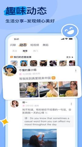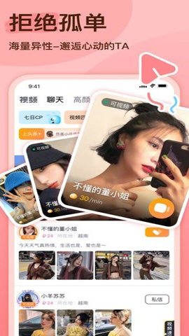 3、我们创新了交友模式,支持用户随时随地与意中人在线畅聊,实现即时互动,让交友过程更加轻松便捷。