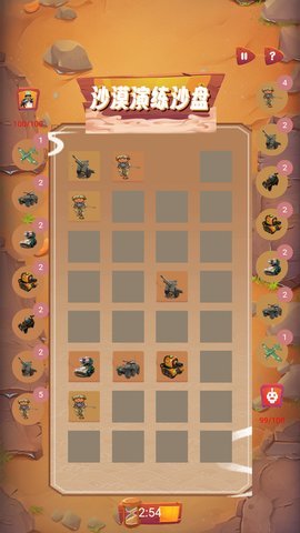 沙漠演练沙盘是一款休闲策略游戏,玩家将指挥各类军事单位,在盲棋棋盘上展开激烈对战。游戏中拥有精美的画质和多样化的玩法,让每一位玩家都能够享受到游戏带来的乐趣。 在沙漠演练沙盘中,玩家可以挑选自己的战略和部队,征服对手,成为战争棋局的指挥官。