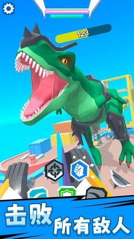 2、在机器人格斗你将面对巨型恐龙和战争机器人的挑战。