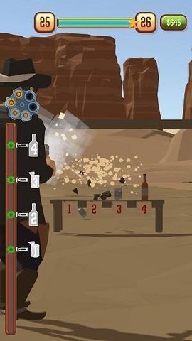 2、每个关卡都充满了刺激和挑战,玩家需要充分展现自己的实力和技巧,控制牛仔进行射击、躲避和换弹等操作,击败敌人并完成任务。