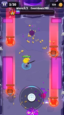 2、玩家可以利用技能随机走位,消灭一波波来袭的怪物。