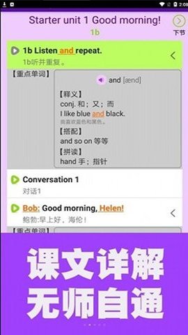 1、初中英语同步课堂还特别设置了休闲单句复读、发音测评和学习要点归纳总结等功能,旨在帮助学生更好地掌握英语。