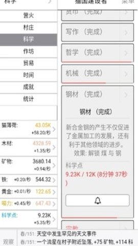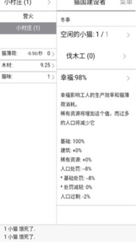 1、KittensGame是另一款乡村模拟文字游戏,玩家将扮演村庄的管理者,通过获取资源和解锁新技术来发展自己的小猫村。