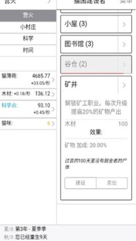 3、玩家需要使用各种技术和资源来建设自己的猫村,让它成为一个充满活力和幸福的地方。
