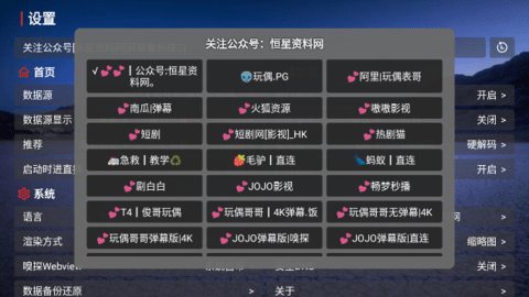 恒星影视TVBox是一款功能强大的影视app,它不仅提供影视直播和影视平台应用,还具有丰富的内容和多条内置线路,让用户可以随意切换观看。 在首页中打开设置,然后进入设置界面,再点击数据源选项,就会跳转到直播界面。在这里我们可以看到正在播放的频道,比如cctv13新闻频道。