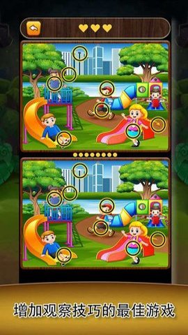 1、游戏的玩法非常简单,玩家需要在两幅看似相同的图片中找出不同之处,并进行标记。