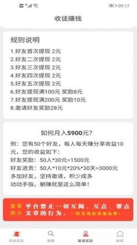 福赚是一款热门的资讯应用,它不仅可以让用户阅读资讯和观看视频广告赚钱,还提供了各种类型的任务奖励。每天都有不同的活动和福利,让用户有更多机会赚取奖励。邀请好友是一个非常好的赚钱方式,用户可以通过分享邀请码邀请更多人加入福赚网,从而获得更多的任务奖励。