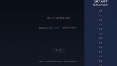 中国广电宽带电视是一款影视娱乐应用,它能够为用户提供丰富多样的电视频道和节目。当用户首次进入该应用时,会自动跳转到所在省市的页面。在应用中,用户只能查看到白色显示的区域,这意味着只有特定地区的用户可以使用该应用。