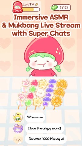 3、玩家将继承父母的店面,可以购买各种材料来制作美味的糖葫芦,通过吃播等方式来吸引更多的顾客,让自己的小店重新聚集起人气。