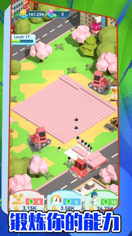 1、在搬砖人物语中,玩家需要点击屏幕来建造和升级不同类型的建筑和设施,同时不断扩大自己的城市规模。